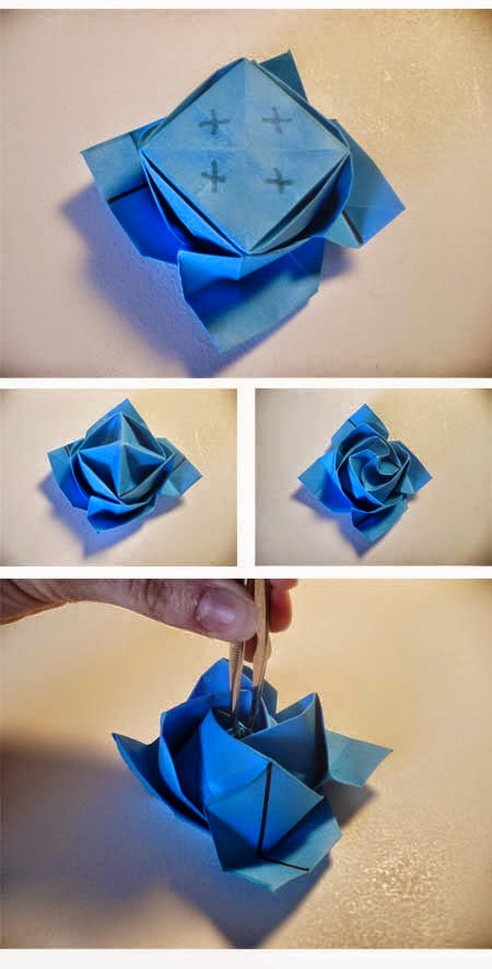 Finally Done also the process of making this origami roses. Step how easy or difficult? If trouble trying to see the picture carefully and try again for sure you will succeed in How To Make Origami Flowers Blue Rose's. So !!!